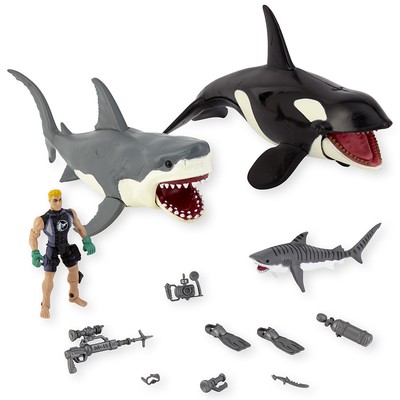 27 stars out of 5 stars 3 ratings based on 3 reviews. Your kiddo will come face-to-face with white sharks every day on screen. The playset consists of a shark figure with a moving jaw a diver with accessories a diving cage and a small Tiger Shark figure.