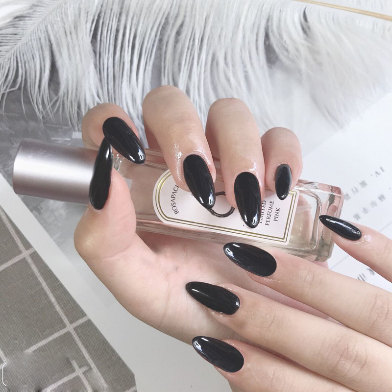 Pure Black Stiletto False Nails Solid Black Oval Sharp End Fake Nails Tips Pointed Head Full Artificial Nails For Lady Daily False Nails Artificial Nailsfake Nail Tips Aliexpress