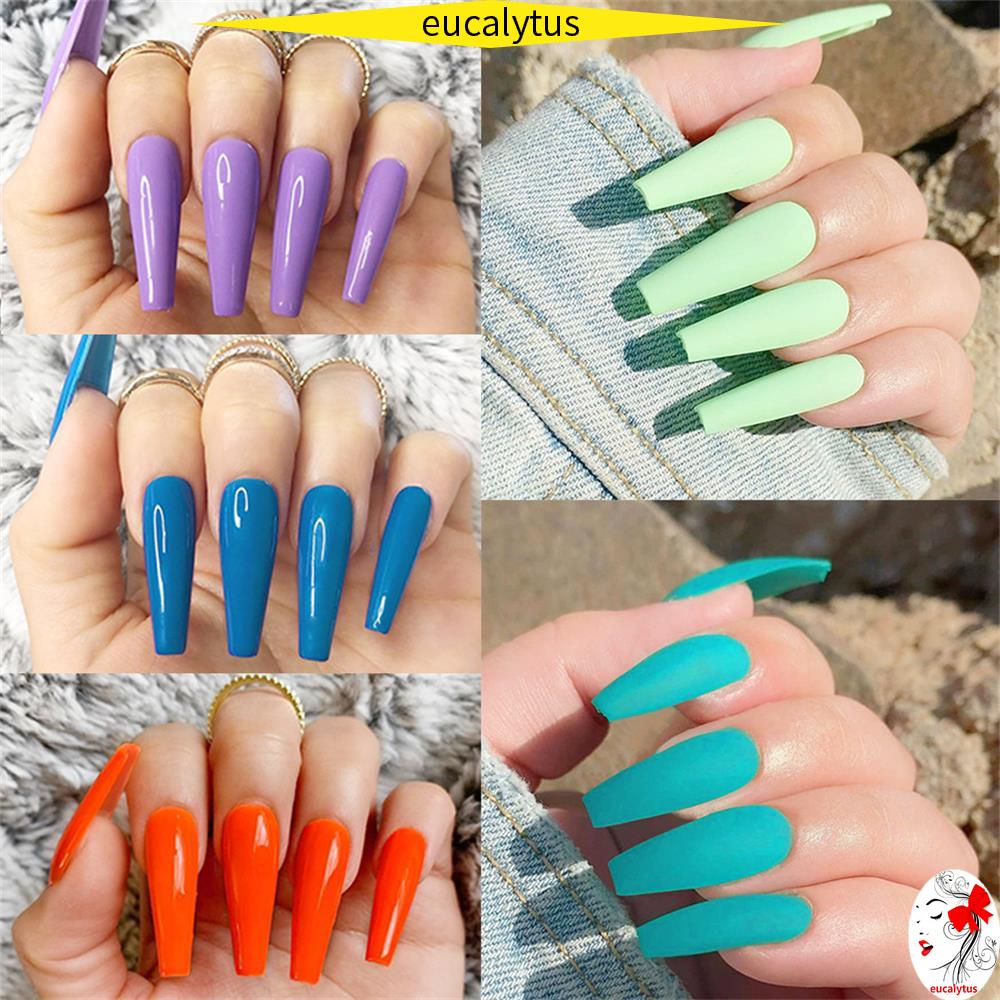 Eutus 24pcs Set Art False Nails Matte Ballerina Nail Coffin Fake Nail Extension Manicure Full Cover Acrylic Nail Tips Shopee Singapore