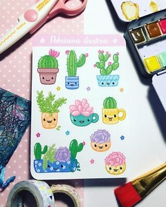 Kawaii Cactus And Succulent Sticker Sheet Minimalist Bullet Journal Stickers Ebay