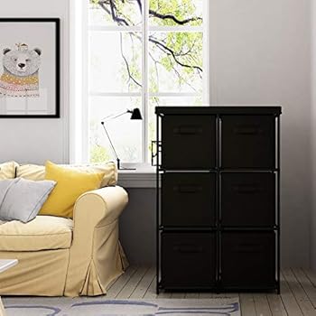 Amazon Com Function Home 6 Drawer Storage Organizer Fabric Chest Cabinet 3 Tier Metal Shelves With 6 Non Woven Collapsible Bins Organizer Tower Unit For Storing Clothing Documents Books Towels In Black Home