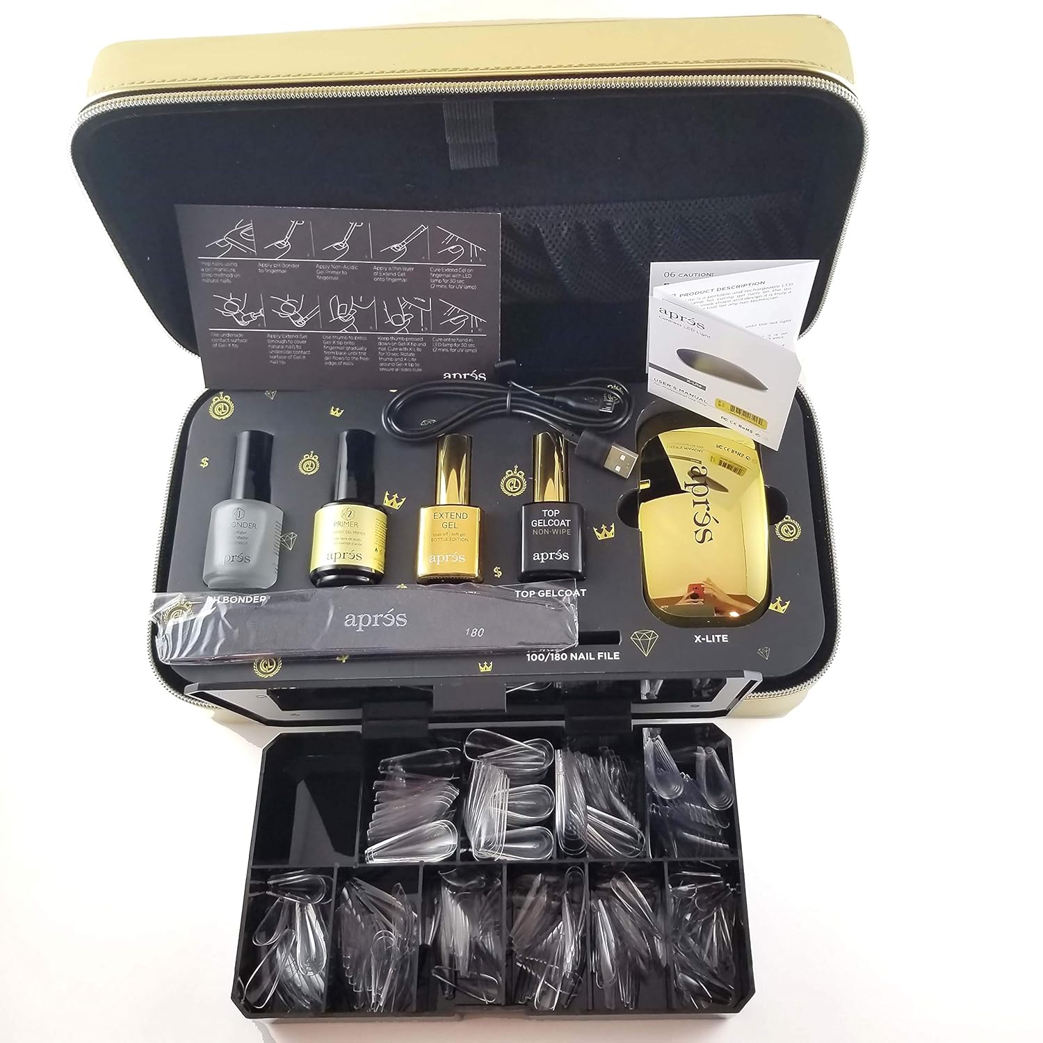 Amazon Com Apres Gel X Nail Extension Kit Includes 15ml Ph Bonder Acid Free Gel Primer Extend Gel Top Gelcoat X Lite Led Light 100 Nail File Beauty