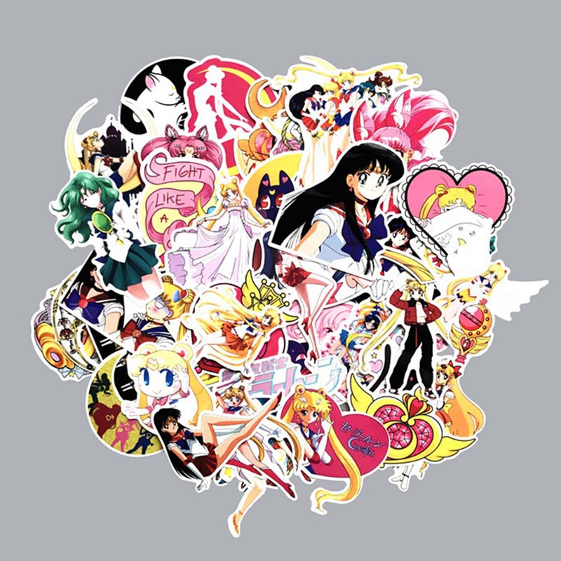 50 Pcs Set Sailor Moon Tsukino Usagi Mixed Stickers Diary Scrapbooking Sticker Decal Skateboard Doodle Laptop Stickers For Kids Wish